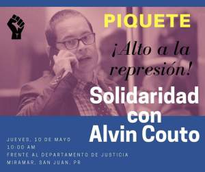 Alguien dijo una vez: “Cuando los dioses nos quieren castigar, responden nuestras plegarias”. Tal vez la cita aplica al caso del Lcdo. Alvin Couto de Jesús, un abogado y activista, muy verbal, fogoso y algo soez en los comentarios que escribe en sus cuentas de redes sociales, quien por mucho tiempo ha sido un férreo opositor de las políticas del Gobierno, la imposición de la Junta de Control Fiscal y otras causas. Su cuenta de Facebook muestra a un activo y, tal vez para algunos, radical manifestante. Couto, fue citado a comparecer el jueves 10 de Mayo, ante un fiscal del Departamento de Justicia, disque a rendir cuentas por unos comentarios que escribió en su cuenta de Twitter, específicamente: “Pesquera, mamabicho, ésta nos la vamos a cobrar. Apunta la afirmación».